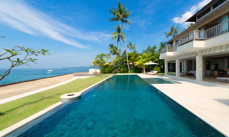 Angsoka Beach Villa can accommodate many guests without anyone feeling crowded. The living room has in all 4 seating areas to enjoy. Whether you want to directly overlook the infinity pool, or relax in one of the built-in corner sofas close to the pond, is up to you. Carefully selected Balinese antiques and artifacts, makes a vast living area even cosy.