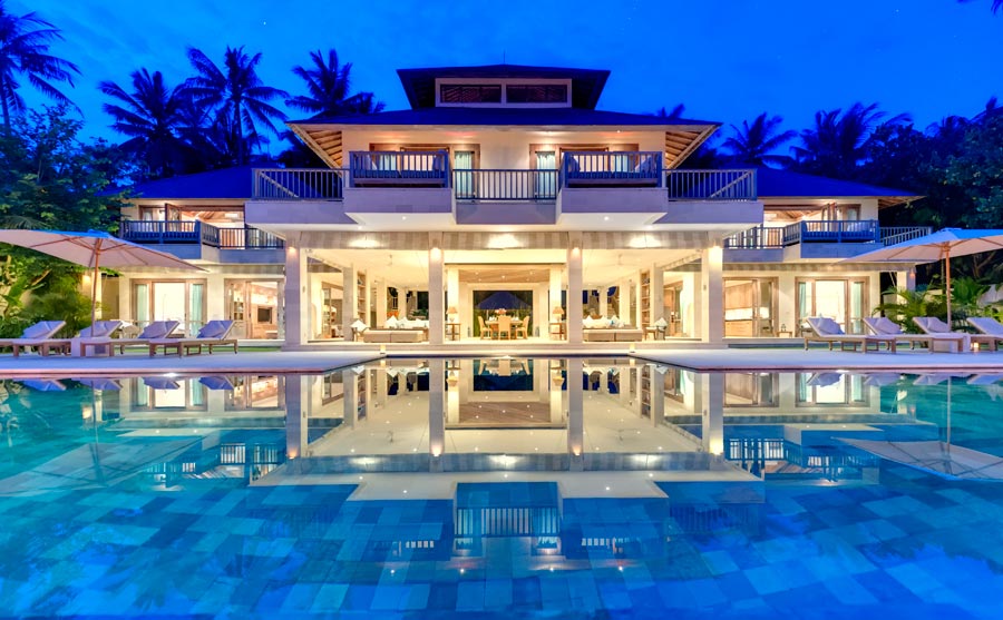This impressive designer villa is located on over 1.500 sq. m land, with close to 900 sq. m of luxury lifestyle. The huge living room, overlooking the 20×5 meter infinity pool with fire-pits and breath taking ocean panorama view in the background, is nothing but spectacular. All the rooms in this spacious villa enjoy direct ocean view. Two big owners suites and 4 big guest rooms can accommodate most families or up to 12 good friends.